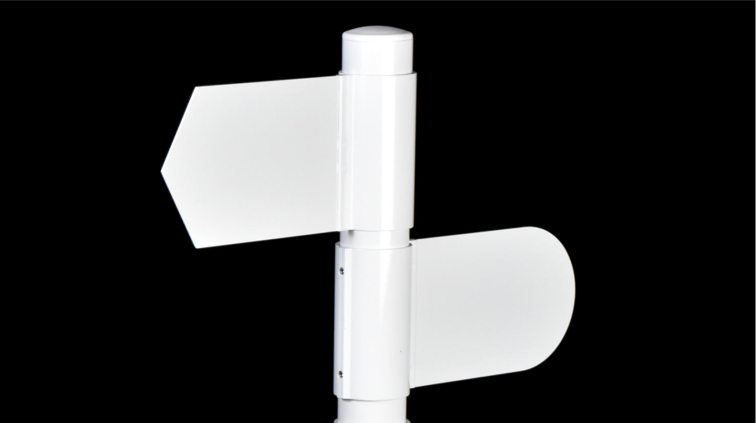 The UniPoint finger post sign system is manufactured from 12swg (2.5mm) flat aluminium, with the finger pointers mounted into an extruded sleeve at one end, to suit 76mm diameter sign posts.