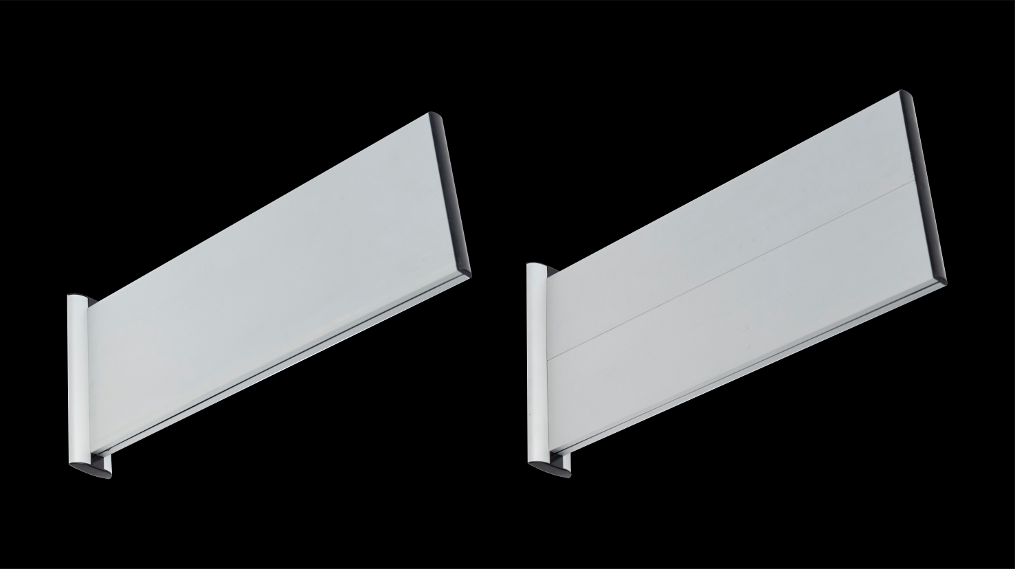 K'Nect projecting end cap come is 4 different sizes 90mm, 120mm, 150mm & 180mm. The end caps are mounted to both ends of the projecting slats.