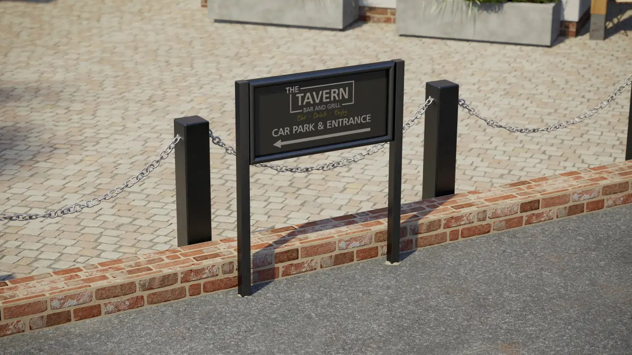 Panel frame signs (sometimes called panatrim signs) look great on post mounted signs and can help unify the aesthetic of a site-wide project. Some of our panel frames can be mounted directly onto posts and others mount to the panel. Often used outside restaurants and public houses, they also provide a smart, professional finish suitable for shop fronts and a variety of commercial settings.