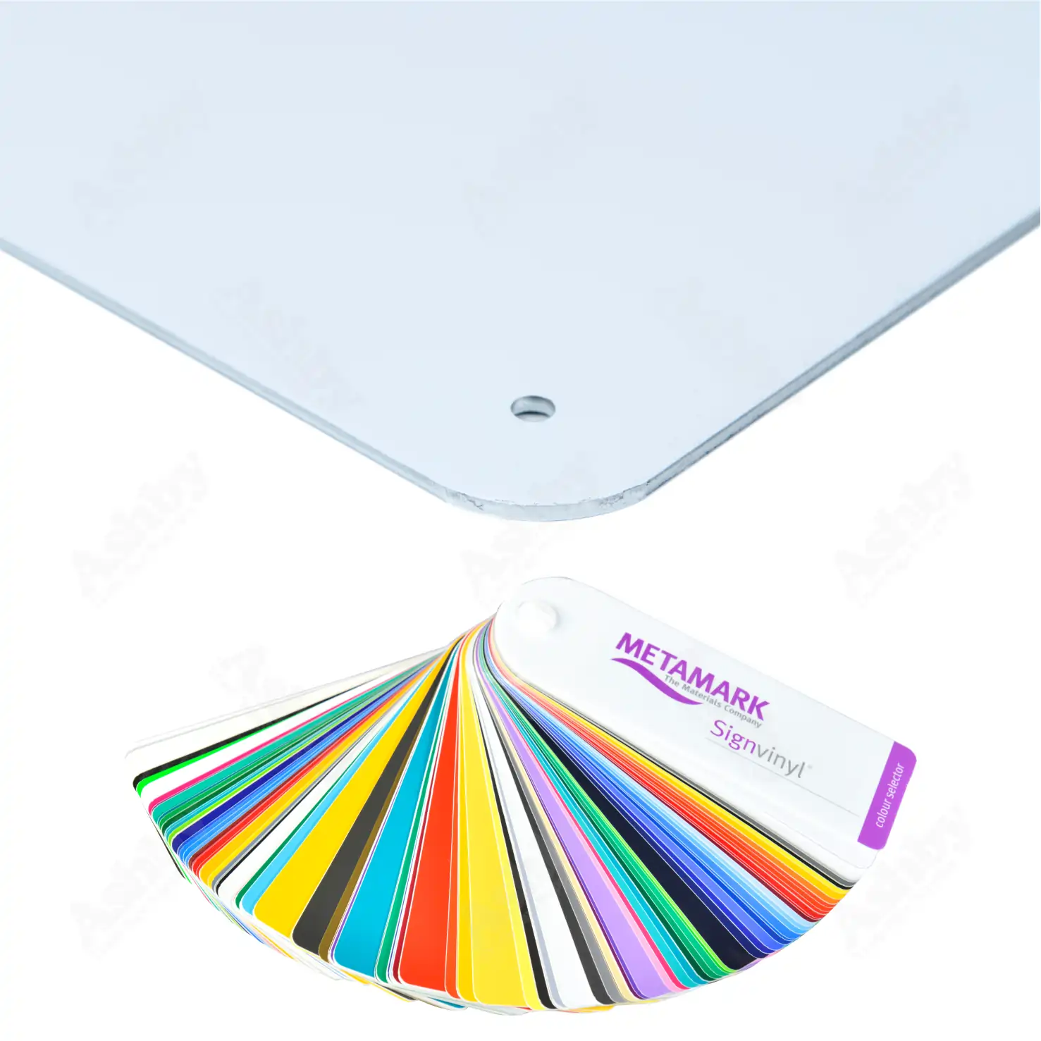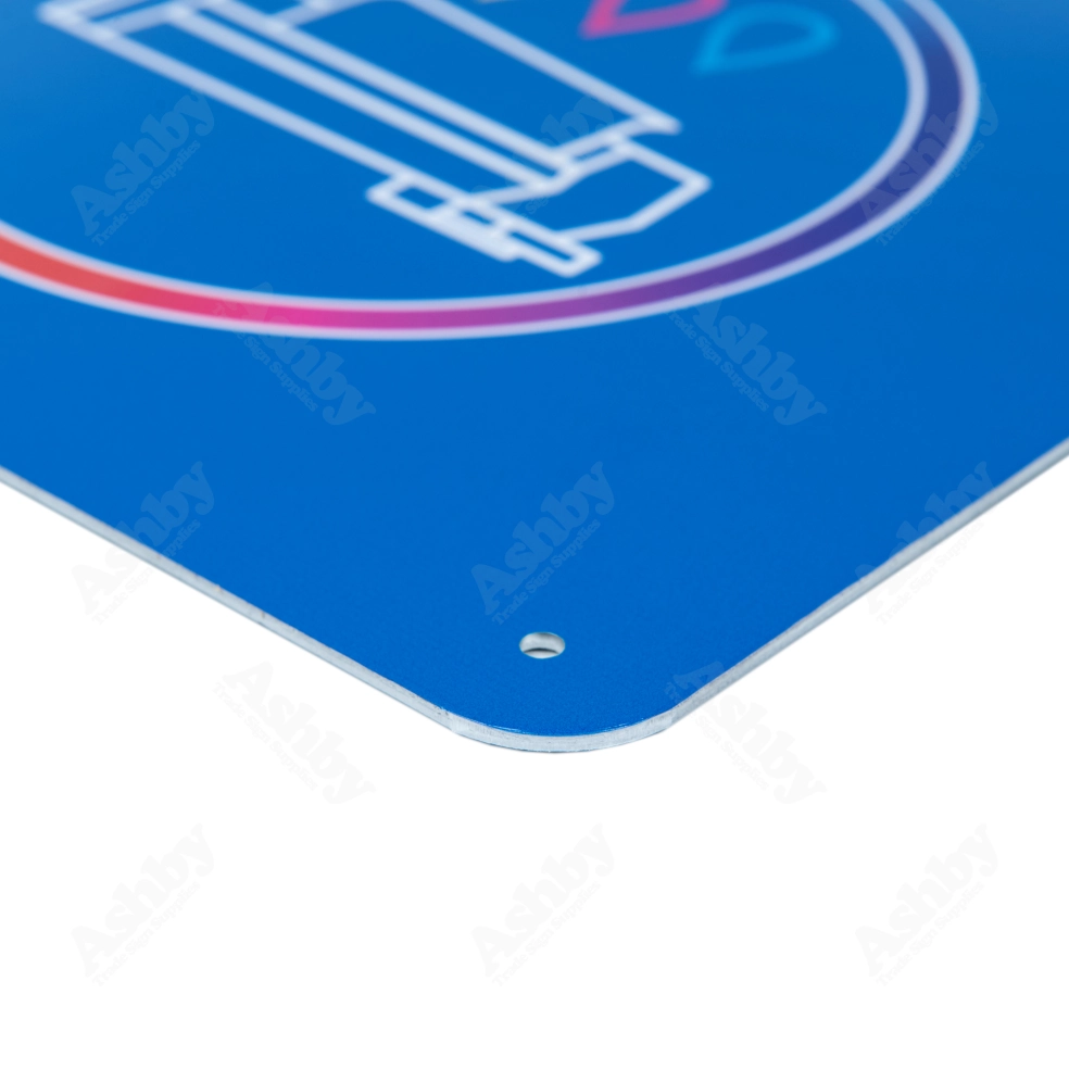 Ashby Trade Sign Supplies manufactures custom sized and shaped signs for mounting to walls and other hard surfaces. Manufactured from either aluminium or coloured composite (ACM), our sign blanks are durable and infinitely customisable with painting, digital printing, and vinyl graphics. Available in a wide variety of finishes, with the mounting holes pre-drilled, ready for installing with colour coded screws or stand-off connectors.