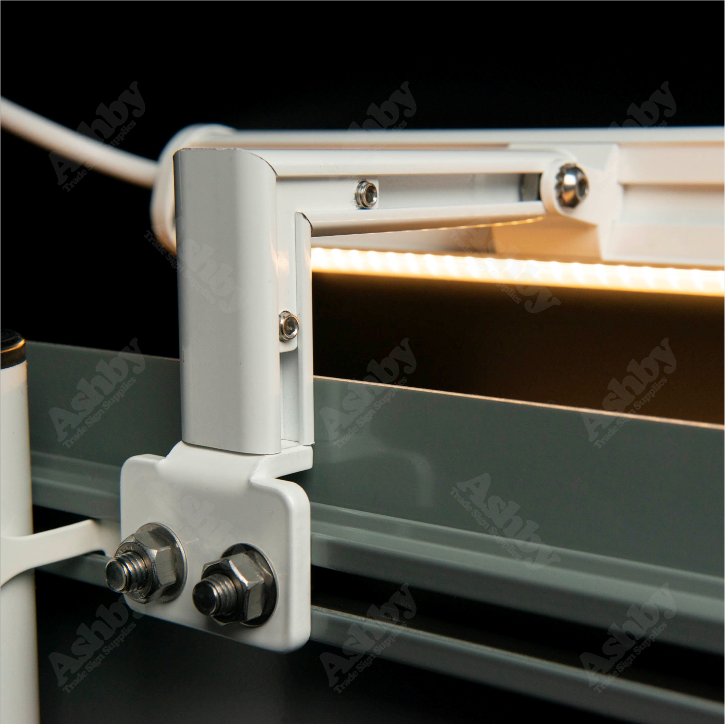 Post-mounted signage, especially commercial signage with no reflective properties, can really benefit from illumination. And while adding a spotlight is a common solution, we prefer the even light provided by our trough light. The most common solution we use is our channel mount bracket - two m8 bolts clamp each bracket to the clip rails on the reverse of the panel, allowing a trough light to be added to a sign after the initial installation (assuming the posts are inset far enough). Single lighting units can have be manufactured with a photocell to improve energy efficiency.